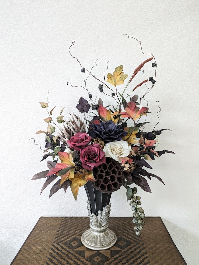 生活を豊かに彩る折花。季節を感じさせる花々を和室に、リビングに、窓辺に、壁にとチョイスが広がります。